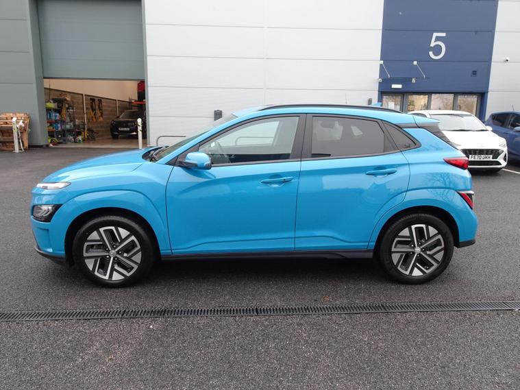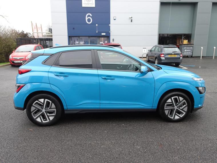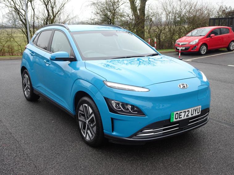 We are delighted to offer for sale this stunning ONE OWNER and LOW MILEAGE 2022 Hyundai KONA EV Premium 5 door SUV. Complimented by a FULL HYUNDAI SERVICE HISTORY and Hyundai car warranty until NOVEMBER 2027 and Battery warranty to November 2030. This well maintained electric SUV offers a substantial battery total capacity of 68 kWh, providing a maximum range of upto 300 miles. Sale includes a Battery state of health check Certificate showing the Battery still at 100%, a real credit to the Hyundai engineering and quality.Driving is made more comfortable and convenient with heated front seats, and parking is simplified thanks to front and rear parking sensors. Stay connected on the go with SAT NAV and Apple CarPlay, while the Blind Spot Collision Avoidance Assist and automatic headlights with dusk sensor enhance safety and awareness.The Hyundai KONA Premium Electric stands out with its impressive 300 mile maximum range from new, a key indicator of its capability compared to other electric vehicles. Recharging is efficient, with a rapid charge from empty to 80% achievable in just 53 minutes at a public charging station. These charging times highlight the practicality of this electric KONA for both daily commutes and longer journeys.The Kona is one of the best value and useable EV's on the market, a great step into the world of ZERO EMISSION driving..Another Quality Car at a Sensible Price from Copycars, ready to drive away ...