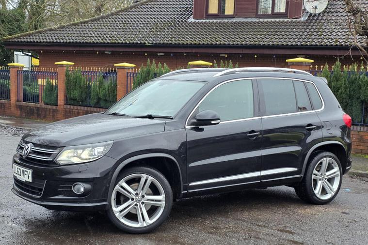 EXTREMLY RARE VEHICLE, BELIEVED LOWEST MILEAGE TSI IN UK FOR THE AGE, DSG AUTOMATIC, R-LINE SPEC IN BLACK, ITS JUST EVERYTHING YOU EVER DREAMED OFF, 210 BHP, CURENT LADY OWNER HAS BEEN THE OWNER FOR ALMOST 10 YEARS, 12 SERVICE STAMPS IN THE BOOK, DYNO AUDIO UPGRADED VW SOUND SYSTEM, TRULY AMAZING CAR PERMENANT 4 WHEEL DRIVE, UNIQUE TO THE R-LINE ARE THE R-LINE DAYTIME RUNNING LAMPS, XENON SELF LEVELING HEADLAMPS, 19'' ALLOY WHEELS, COLOUR TOUCH SCREEN NAVIGATION, DAB RADIO, TYRE PRESSURE MONITORING, FRONT AND REAR PARKING SENSORS, FULL BLACK LEATHER, HEATED FRONT SEATS, SELF PARK BUTTON, HILL DESSENT BUTON, POWER FOLD DOOR MIRRORS, OBVIOUSLY HAD A VERY EASY LIFE AS IT CLEARLY SEEN FROM ITS EXCEPTIONAL CONDITION, Blenheim Car Sales (Wolverhampton) Ltd is a family run business, Full dealer facilities, PX, Finance, Extended warranty, All of our cars are hand picked and carefully sourced using our many years of Retail Dealer Experience, They are then independently inspected and sold to a guaranteed retail standard, We include an **MOT**120 Point check**HPi Report**Nationwide Warranty**Fully valeted**12m roadside assistance**Collection from Bus, Train or airport if required at no extra cost, Drive away insurance and Nationwide delivery available at an extra cost please call for a quote, Bespoke and tailored finance packages are available to suite your monthly budget, We recommend you book your viewing, This ensures your car will be ready fuelled and have a courtesy clean prior to arrival and also means you will be seen instantly without waiting, We always reserve cars without deposit or commitment when we have made an appointment to viewThe performance of this Tiguan is further highlighted by its brisk 0-62mph acceleration time of just 7.8 seconds, indicating a more dynamic driving experience compared to many similar vehicles. Its inclusion in a low insurance group also suggests that running costs could be more economical. With a modest 53908 miles on the clock, this Volkswagen Tiguan R-Line is a well maintained and capable option for those seeking a premium SUV..