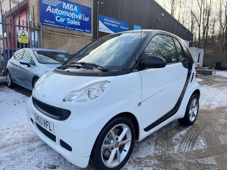 2011 SMART FORTWO 1.0 MHD PULSE AUTOMATIC This lovely little car has only had 1 Owner Stirlingshire council from new showing just 76.000 miles and will come with 1 YEARS MOT, very nice in bright White over Black paint with black split leather retro interior, alloys, electric windows, factory stereo, £20 PER YEAR ROAD TAX and tremendous on fuel and ULEZ compliant for all major cities, this cracking little car will make some lucky person very happy at this money a bargain at £2995.