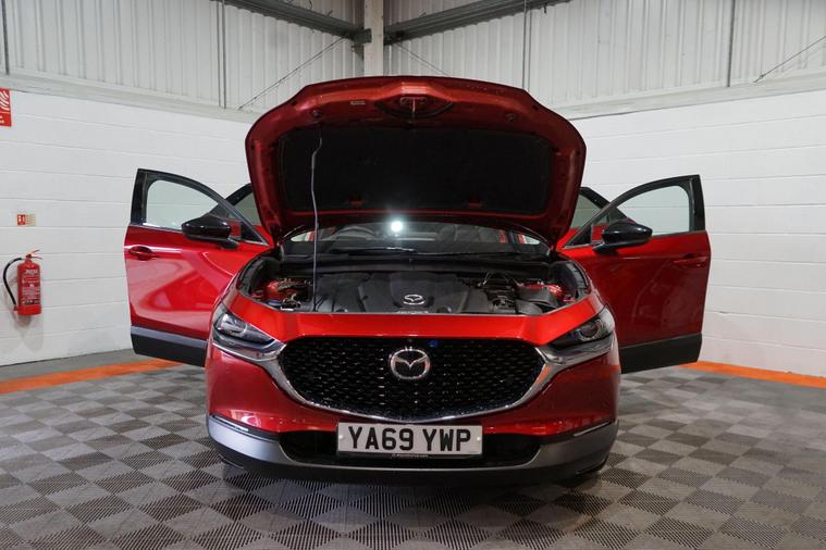 The Mazda CX-30 2.0 SKYACTIV-X MHEV GT Sport Tech Auto 4WD Euro 6 (s/s) 5dr combines striking crossover design, innovative mild-hybrid efficiency and premium GT Sport Tech specification in a refined, engaging compact SUV package. Powered by Mazda’s advanced 2.0-litre SKYACTIV-X petrol engine with mild-hybrid assistance delivering around 180-186 PS and 240 Nm of torque, paired with the smooth automatic gearbox and intelligent i-Activ AWD, it offers responsive acceleration, composed handling, excellent real-world fuel economy and reduced emissions.Finished in stunning Soul Red Crystal Metallic for a vibrant, premium and eye-catching presence. This example presents beautifully and benefits from full service history. It is HPI clear, with a full report provided for complete peace of mind.Factory specification includes:● 18'' bright alloy wheels● Adaptive LED headlights with signature daytime running lights● Power liftgate● Rear privacy glass● Black leather upholstery with rich brown accents● Driver power seat with memory, lumbar and head-up display● Heated steering wheel● Power tilt and slide sunroof● 12-speaker Bose premium sound system● 8.8'' colour centre display with Mazda Navigation● Apple CarPlay & Android Auto● Dual-zone climate control● 360° View Monitor● Cruising & Traffic Support● Driver Monitoring● Front Cross Traffic Alert● Smart Brake Support (front/rear/rear crossing)● Blind Spot Monitoring with Rear Cross Traffic Alert● Lane-keep Assist & Lane Departure WarningAdditional features include the innovative e-SKYACTIV-X mild-hybrid technology for smoother power delivery and improved efficiency, plus full service history ensuring reliability and peace of mind.All part exchange welcome with competitive valuations available.Walk-around video viewings and nationwide delivery can also be arranged..