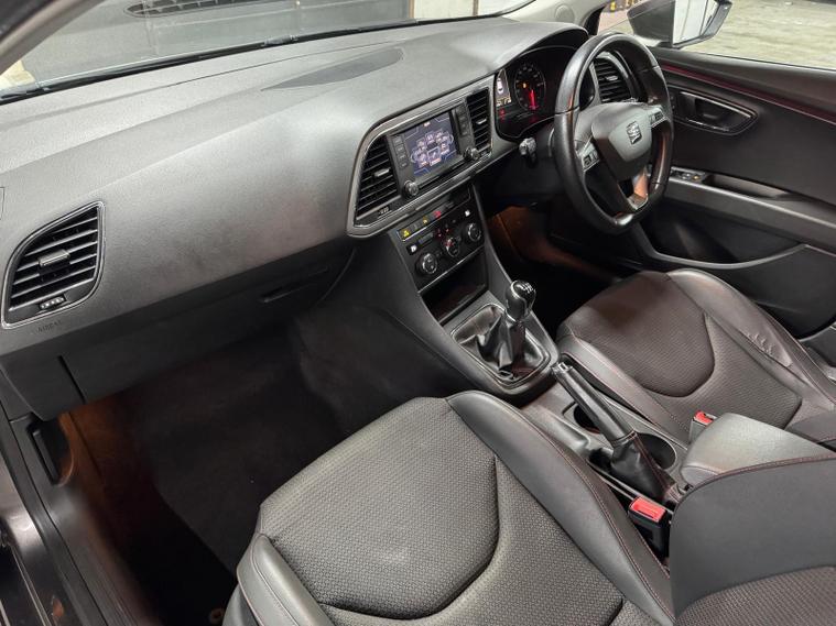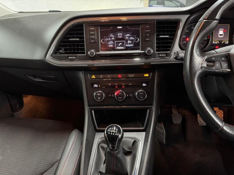 - Steering Wheel - Flat-Bottomed Perforated Leather with Red Stitching and FR Logo