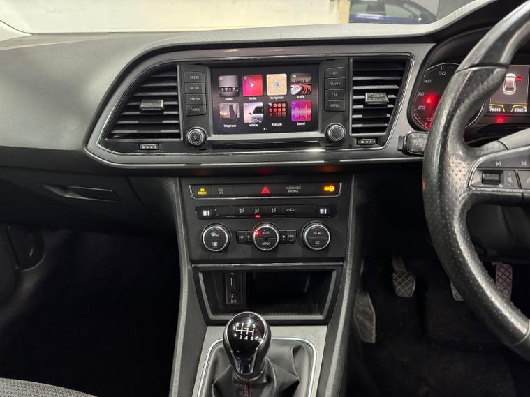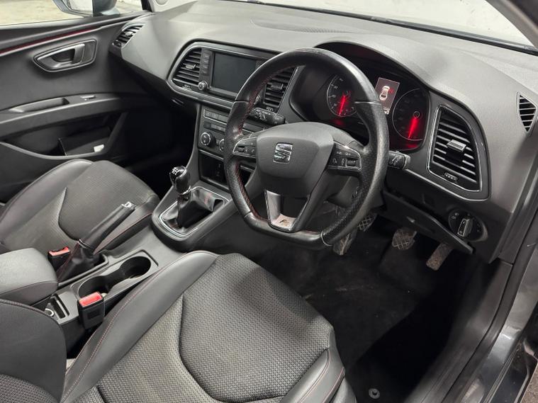 - Steering Wheel - Flat-Bottomed Perforated Leather with Red Stitching and FR Logo