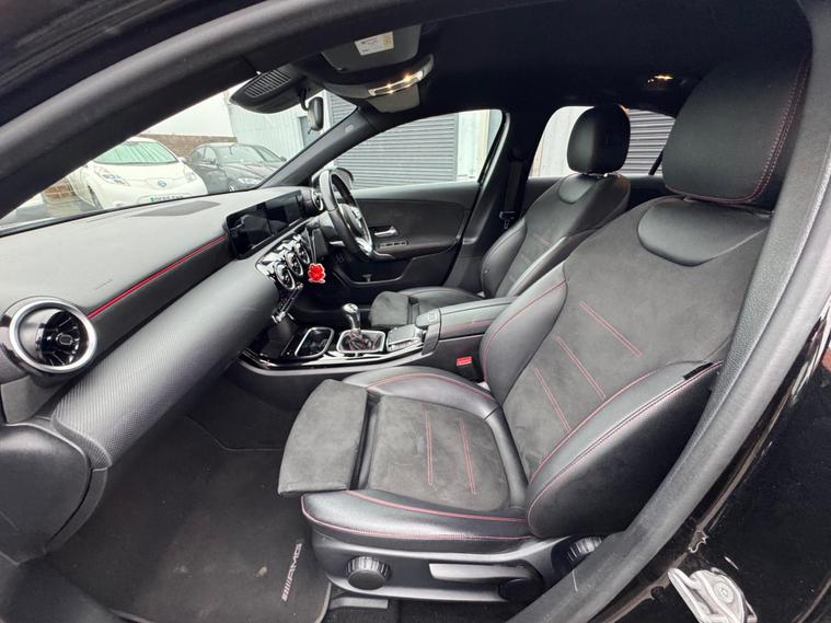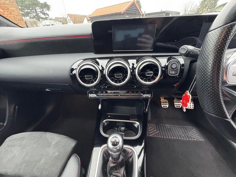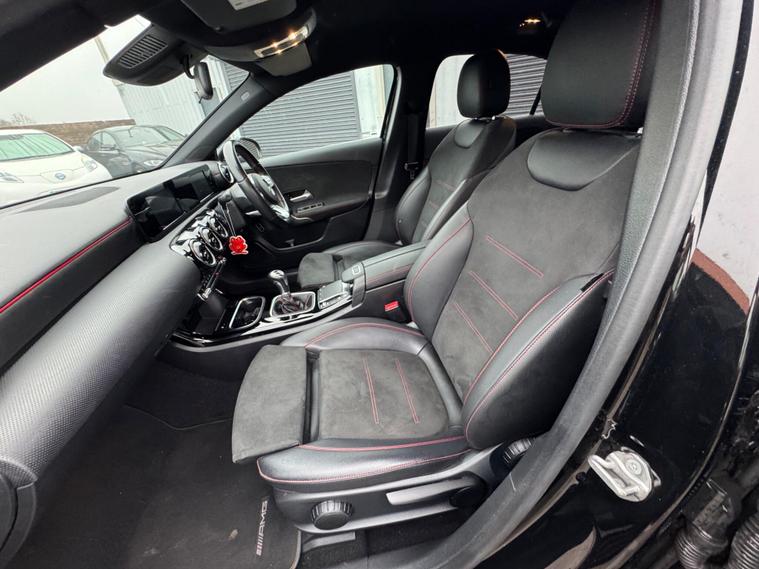 This MERCEDES A CLASS AMG features stunning looks and spec, Both keys supplied, keyless start, start stop technology, Service history, Finished in a black colour, diamond cut alloys, Spec includes Reverse camera, multiple control system steering wheel, Half leather seats with extensions, red stitching interior, Heated front seats, Climate controlled air conditioning, 8in colour display digital dash, touch pad control system, with Nav/BluetoothDAB/USBC charging points, Auto lights, E/windows, Remote c/locking, Multi airbags, spacious boot, HPI clear with certificate, No admin fees to pay, Road tax band F at 195 pounds per year, August 2026 Mot, All Included in the price is a 12 month warranty with the first month given as unconditional, and then a further 11 months covering the most major parts, driveaway insurance available (Ts & Cs apply).