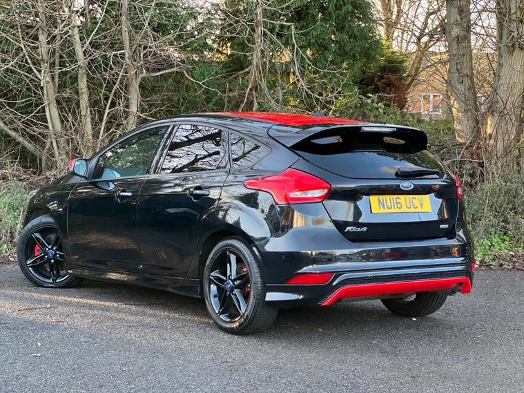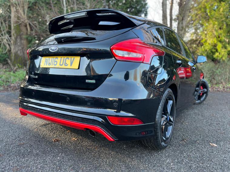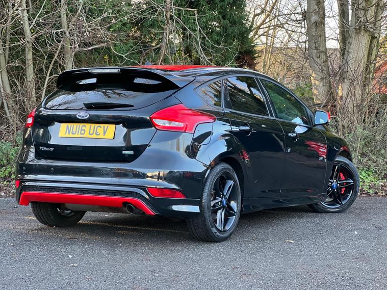 This 2016 Ford Focus T Zetec S presents a superb ownership history, having been cared for by only two owners and boasting a clear vehicle history check. This Euro 6 compliant 1.5 litre petrol model comes in the desirable Zetec S trim, featuring eye catching contrast Race Red detailing on its door mirrors and roof, complemented by stylish 17 inch black alloy wheels. Inside, you'll find a leather steering wheel with red stitching, adding a touch of sporty refinement. The power fold door mirrors offer added convenience.The Ford Focus T Zetec S offers a compelling blend of performance and practicality. Its impressive acceleration, reaching 0 to 62 miles per hour in just 8.6 seconds, sets it apart from many other vehicles in its class. Furthermore, this model benefits from a large boot space, making it an exceptionally versatile choice for everyday use, whether for commuting or carrying luggage..
