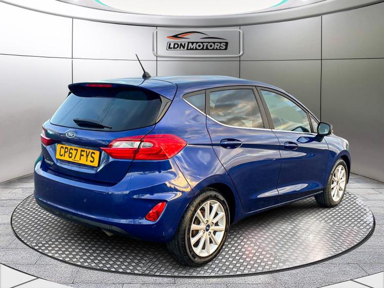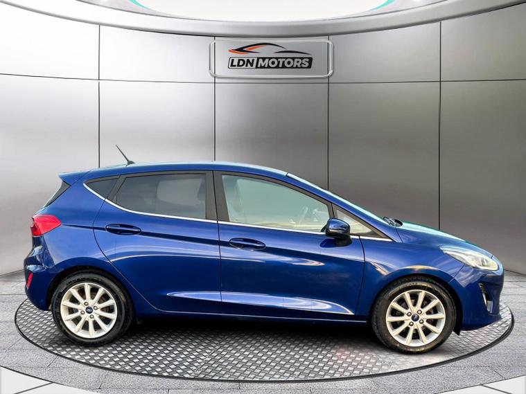 This 2018 Ford Fiesta Titanium boasts exceptionally low mileage for its age, having covered just 30150 miles. This popular hatchback, featuring a 1.0L petrol engine and meeting Euro 6 emissions standards, has been cared for by only two owners. Its Titanium trim level includes the NCAP Pack for enhanced safety, with automatic headlights that switch on and off as needed, and also manage high beam functionality.Inside, you'll find comfort and convenience with Electronic Automatic Temperature Control air conditioning, ensuring a pleasant cabin environment. Navigating your journeys is made simple with the Ford Navigation System, which integrates seamlessly with Ford SYNC 3, offering full compatibility with both Apple CarPlay and Android Auto. These features, combined with the low mileage and limited ownership, highlight how this Fiesta Titanium stands out as a well maintained and desirable option..