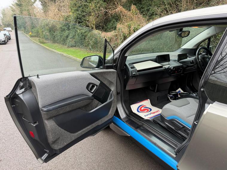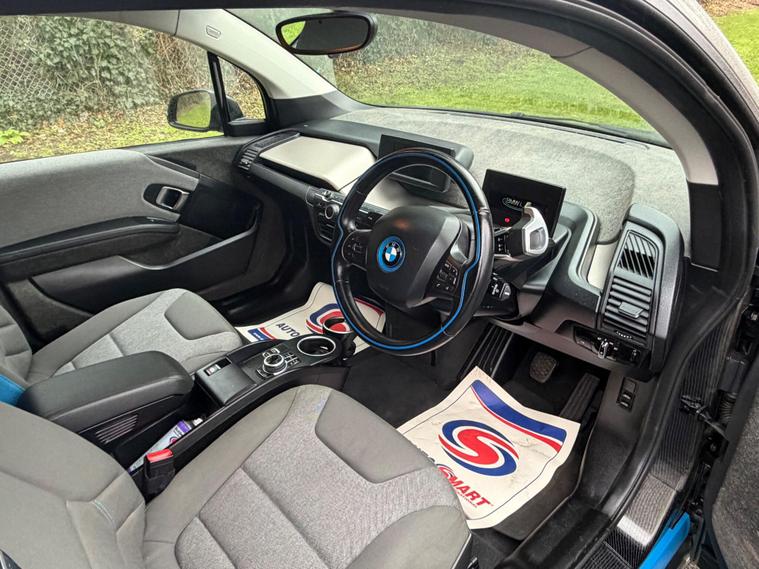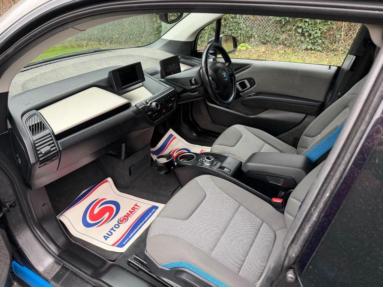 ULEZ ** IMMACULATE INSIDE OUT ** GENUINE LOW MILES ** FULL SERVICE HISTORY WITH LAST SERVICE AT 34K ** MOT 02030183648 *** SPARE KEY ** SAT NAV **MEDIA PLAYER ** HEATED SEATS ** REAR PARKING SENSORS ** BLUE TOOTH ** FREE 06 MONTHS PARTS AND LABOUR NATIONWIDE WARRANTY ** FREE 12 MONTHS AA BREAKDOWN COVER ** RUNS PERFECT ** BOTH CHARGING CABLES AVAILABLE**** This 2017 BMW i3 presents an exceptional opportunity with its remarkably low mileage of just 35, 000 miles for its age. As a fully electric vehicle, it offers a clean and efficient driving experience. The i3 boasts a 33 kWh battery making it suitable for both daily commutes and longer journeys. Charging is convenient, with a full charge at home using a 7kW charger taking approximately 5 hours and 15 minutes, while rapid public charging can replenish the battery from empty to 80% in as little as 40 minutes. This particular vehicle has a clear vehicle history check, offering peace of mind. Notable features include the Comfort Access System for keyless entry, LED headlights for enhanced visibility, automatic single zone climate control, heated seats for the driver and front passenger, and a rain sensor that automatically activates the headlights.The performance of this BMW i3 is a key highlight, with its electric powertrain delivering brisk acceleration from 0 to 60 mph in just 7.2 seconds. This responsiveness indicates a more engaging driving experience compared to many other vehicles in its class. The combination of its electric nature, impressive range, rapid charging capabilities, and a suite of convenient features like automatic climate control and heated seats, positions this i3 as a compelling choice for those seeking a modern, economical, and enjoyable vehicle..