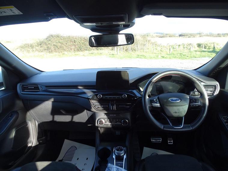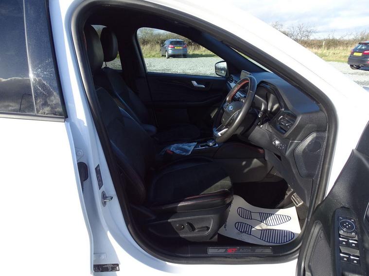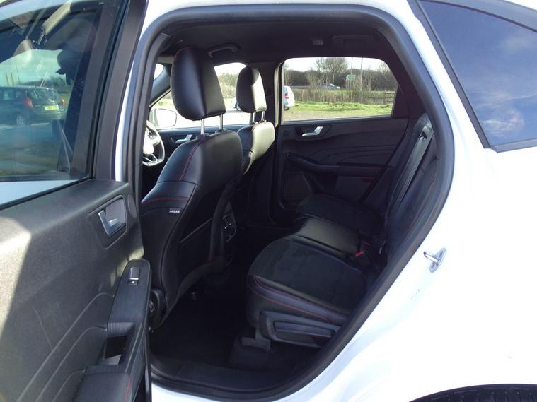 This 2022 Ford Kuga ST-Line Edition is a superb example, having had only one owner since new. This stylish SUV features a responsive 2.5 litre petrol hybrid engine, meeting Euro 6 emission standards. Inside, you'll find comfort and convenience with electronic automatic air conditioning and a Ford SYNC3 DAB navigation system that seamlessly integrates with Android Auto and Apple CarPlay, all delivered through a premium branded sound system. For effortless parking, it comes equipped with front and rear parking sensors, a rear view camera, and full LED headlamps for excellent visibility.Experience impressive performance with a 0-62mph acceleration time of just 9.1 seconds, all while benefiting from excellent fuel economy of 51 miles per gallon. This Kuga also boasts low CO2 emissions and falls into a low insurance group, making it a cost effective choice. These highlights demonstrate how this particular Ford Kuga offers a superior ownership experience compared to other vehicles in its class..