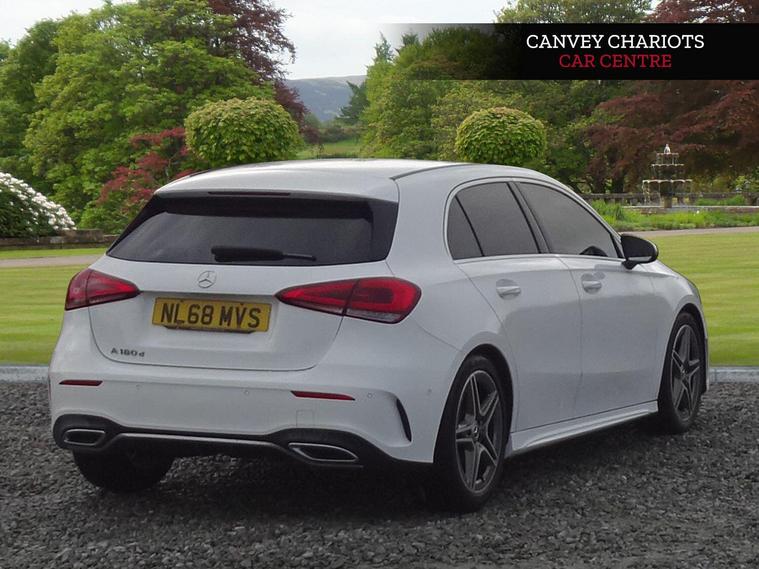 This 2018 Mercedes Benz A Class A180d AMG Line Executive boasts exceptionally low mileage for its age, having covered just 49, 500 miles. This Euro 6 compliant 1.5L diesel engine offers an efficient drive, complemented by the sporty AMG Line trim. You'll appreciate the convenience of the Executive Package, which includes front and rear parking sensors, heated seats, and a 180 degree reversing camera with parking guidelines. The vehicle also features LED High Performance Headlamps with integrated LED daytime running lights and automatic headlamp activation, ensuring excellent visibility.Inside, the A Class provides a comfortable and sophisticated cabin, enhanced by the THERMOTRONIC luxury automatic climate control with a two zone display. The generous boot space is a practical highlight, making it ideal for everyday errands and longer journeys alike. These features, combined with its low mileage and desirable AMG Line specification, set this Mercedes Benz A Class apart from other vehicles in its class..