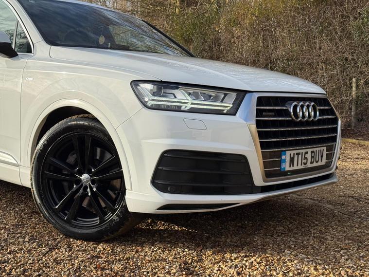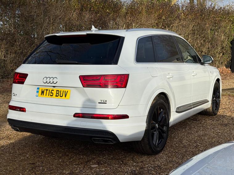 This 2015 Audi Q7 TDI V6 S line presents an exceptional opportunity with its remarkably low mileage of just 75, 000 miles for its age, complemented by an MOT valid until November 2026 and a clear vehicle history check. This Euro 6 compliant, four wheel drive model boasts a powerful 3.0L diesel engine and offers comfortable seating for seven occupants. It comes equipped with a comprehensive Parking Pack Advanced, featuring Blind Spot Assistance and a 360 degree camera, alongside striking Audi Matrix LED Headlights and the advanced Audi Virtual Cockpit. The inclusion of Adaptive Air Suspension and a Trailer Pack with a towbar, capable of towing up to 2800 kg, further enhances its versatility. A 3 month warranty provides added peace of mind.The performance of this Q7 is a notable highlight, achieving 0-62mph in a swift 6.5 seconds, demonstrating its dynamic capability. Its low insurance group rating also sets it apart from many similar vehicles, offering potential cost savings for owners. The partial service history, with the last service conducted at 74, 980 miles on 25 November 2025, indicates consistent maintenance. This Audi Q7 TDI V6 S line is a well appointed and capable seven seat SUV, offering a blend of performance, technology, and practicality..