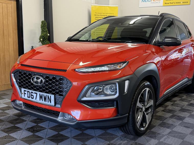 2017 Hyundai KONA 1.0 T-GDi Blue Drive Premium SE Euro 6 (s/s) 5dr with 43, 765 miles, finished in the very sought-after Tangerine Comet Pearl paintwork. Supplied with book packs and two keys. This vehicle drives fantastically and offers a lovely specification, making it great value.The service history is as follows: serviced on 14/05/21 at 13, 949 miles, 05/05/23 at 25, 016 miles, 09/05/24 at 33, 509 miles and most recently on 06/05/25 at 40, 421 miles, all carried out by Bristol Street Motors. A service and MOT will be carried out as part of preparation. The vehicle is supplied with a 3-month comprehensive warranty, with the option to extend for up to two years. Every car comes with 12 months free AA roadside breakdown and recovery regardless of age, mileage or value. All retail vehicles are fully health-checked and prepared to the highest standard.Part exchange is welcome for any value and our buying department can provide prompt valuations. Nationwide delivery is available at an additional cost upon request. You can reserve this vehicle today with a £250 fully refundable deposit. We currently have over 150 vehicles in stock.Established in 2021, we pride ourselves on excellent customer service and outstanding reviews. We are an AA Approved Dealer with Trading Standards endorsement and are regulated and authorised by the Financial Conduct Authority under FRN: 1014981. Please see the photos for full condition. Lovely specification and great value..