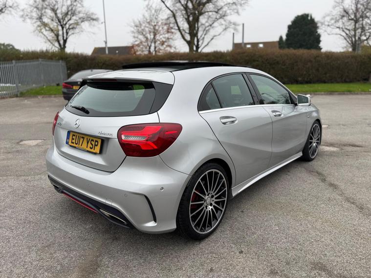 This 2017 Mercedes Benz A Class A250 AMG (Premium) offers a compelling blend of performance and luxury. Powered by a 2.0 litre petrol engine and featuring four wheel drive, this Euro 6 compliant model ensures an engaging driving experience. Inside, you'll find the comfort of Thermotronic automatic climate control with two zones, and the convenience of Bluetooth connectivity. The exterior is enhanced with striking LED headlights, and for effortless manoeuvring, a 180 degree reversing camera with parking guidelines is fitted. A panoramic sliding sunroof adds an open and airy feel to the cabin.The A250 AMG (Premium) variant stands out with its impressive acceleration, achieving 0-62mph in just 6.3 seconds, demonstrating its dynamic capabilities. This performance, combined with its sophisticated features, positions it favourably against other vehicles in its class. Furthermore, the generous boot space provides practicality for everyday use and longer journeys, making this Mercedes Benz a well rounded choice for those seeking both excitement and utility..