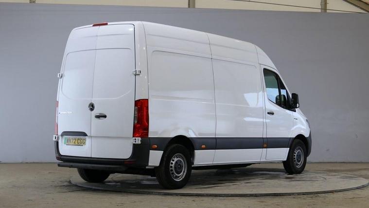 This 2022 Mercedes-Benz eSprinter boasts a full service history with its last service completed on 21st January 2026 at 18, 308 miles, and it has had only one owner from new. This electric panel van, a 55kWh Progressive Auto FWD L2 H2 5dr model, offers a 55 kWh battery with a maximum range of 82 miles when new. Charging is convenient, taking approximately 8 hours for a full charge at home using a 7kW charger, while public charging can reach 80% in around 2 hours and 17 minutes. The vehicle comes with a 3 month warranty and a 12 month MOT provided on purchase. Notable features include the MB Audio System with Bluetooth, an electrically heated driver's seat, TEMPMATIC air conditioning, and automatic headlights.The Progressive trim level of this eSprinter provides a well equipped driving experience, enhanced by features like the integrated audio system and climate control, making it a comfortable choice for daily use. The automatic transmission and front wheel drive contribute to a smooth and responsive drive, setting it apart from other vehicles in its class. With its electric powertrain, this Mercedes-Benz eSprinter represents a modern and efficient approach to commercial transport, offering a blend of practicality and advanced technology..