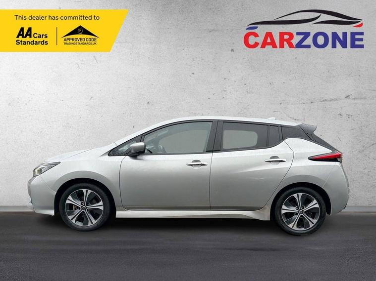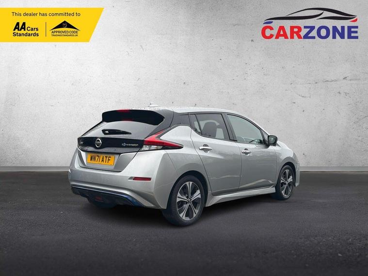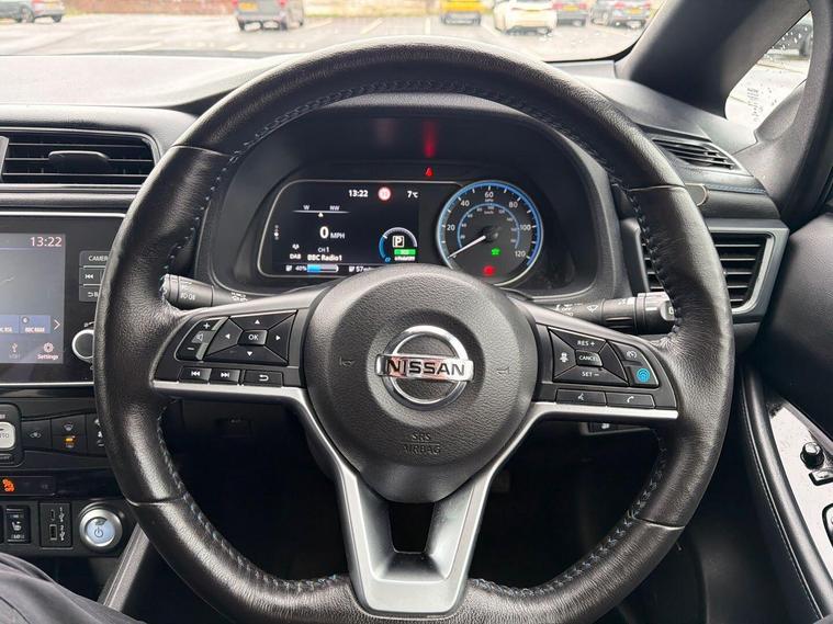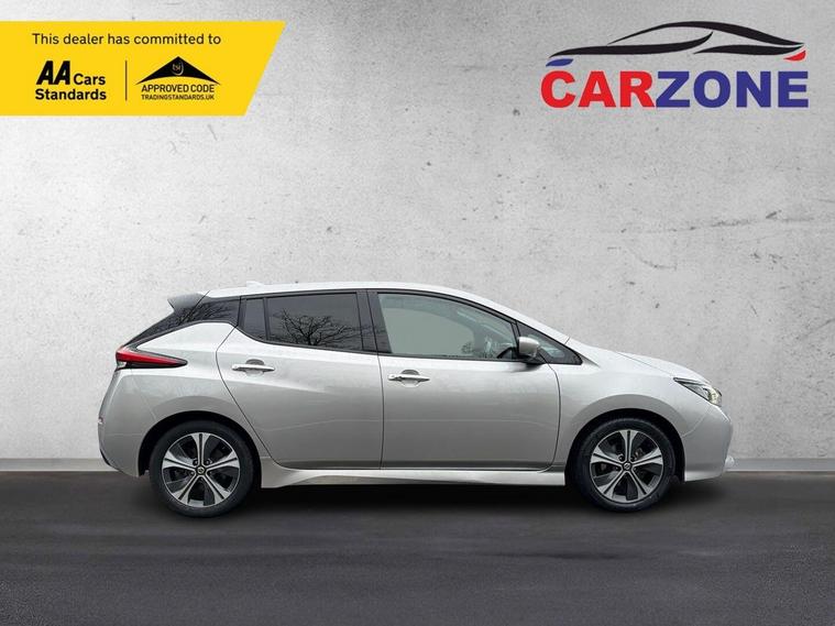 This 2021 Nissan Leaf Tekna boasts a full service history and an MOT valid until December 2026, offering peace of mind for its next owner. This electric vehicle features a 40 kWh battery with a maximum range of 168 miles when new. Charging at home on a 7kW charger takes approximately 7 hours and 30 minutes, while rapid public charging can take the battery from empty to 80% in just 1 hour and 20 minutes. This Tekna model comes with a Tech Pack, including 360 degree, front, and rear parking assistance, alongside a BOSE premium audio system with 7 speakers. The Heat Pack ensures comfort with heated seats and a heated steering wheel, while Intelligent Cruise Control with adaptive functionality and LED headlights further enhance the driving experience.The Nissan Leaf Tekna offers a generous boot space, making it a practical choice for everyday use and longer journeys. With only one owner since new and a clear vehicle history check, this car represents excellent provenance. The inclusion of features such as the advanced parking assistance and the premium BOSE sound system sets this particular Tekna apart, providing a more refined and convenient ownership experience compared to other vehicles in its class. The vehicle is offered with a 3 month warranty for added assurance..