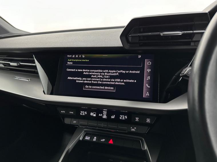 Our AUDI A3 is finished in Mythos Black MetallicONE OWNER FROM NEW | 17'' ALLOY WHEELS | APPLE CARPLAY | ANDROID AUTO | FULL AUTO LED HEADLIGHTS | SATELLITE NAVIGATION SYSTEM | LEATHER SEATS | LANE CHANGE ASSIST | BLUETOOTH AUDIO STREAMING | TWO ZONE CLIMATE CONTROL | ELECTRIC HEATED FOLDABLE MIRRORS | CRUISE CONTROL | DAB TUNER | MULTIFUNCTIONAL STEERING WHEEL WITH PADDLE SHIFTERS | RAIN SENSORS | USB CONNECTIVITY | REAR FOLDABLE SEATS | FRONT ARMRESTThis vehicle's specification has been provided by the leading data supplier CAP HPI, which provides vehicle data across the whole of the industry. However, we cannot guarantee the accuracy of any data provided by 3rd Party sources as the specification can sometimes vary. Please check with a salesperson and ensure you physically inspect the vehicle in respect of any items which may affect your decision to purchase. FOR FULL SPEC PLEASE CHECK BELOW.