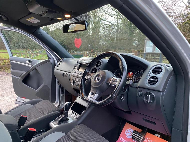 This 2015 Volkswagen Tiguan TDI R-Line presents a compelling proposition with its remarkably low mileage of just 79, 300 miles and a history of only two owners, all confirmed by a clear vehicle history check. Under the bonnet, a robust 2.0 litre diesel engine paired with a four wheel drive system ensures capable performance, while its impressive 2200 kg towing weight makes it a practical choice for various needs. This R-Line trim level comes equipped with a suite of advanced features designed for convenience and safety, including front and rear parking sensors with park assist, and striking Bi-Xenon headlights.The Tiguan TDI R-Line stands out due to its thoughtful combination of features and excellent provenance. The inclusion of Bluetooth telephone preparation adds modern connectivity, enhancing your driving experience. Furthermore, its low insurance group rating suggests that running costs are likely to be more economical compared to similar vehicles, making it an attractive option for many drivers. This particular example offers a well maintained and feature rich package for those seeking a reliable and versatile SUV..