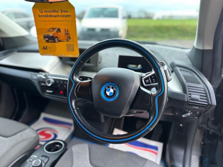This 2018 BMW i3 boasts exceptionally low mileage for its age, having covered just 29790 miles, and has been cared for by a single owner from new. This Euro 6 compliant petrol plug in hybrid offers an efficient driving experience, supported by a full service history with the last service completed on 2025-10-14 at 29939 miles. The vehicle's MOT is valid until November 2026 and a clear vehicle history check confirms its excellent condition. Notable features include a convenient front fuel filler point with push to open function, a metal fuel tank, and stylish 19in i Light Streamline Star Spoke style 427 alloy wheels with mixed tyres. An oil sensor monitors level and grade, providing warnings via the check control system, and the exhaust tailpipe is discreetly hidden.The BMW i3 stands out with its advanced petrol plug in hybrid technology, offering a blend of electric and petrol power for versatile journeys. The very low mileage and single owner provenance indicate a vehicle that has been meticulously maintained and lightly used, setting it apart from other models on the market. Its Euro 6 rating signifies lower emissions, contributing to a more environmentally conscious drive. The inclusion of the 19in alloy wheels adds a touch of sporty appeal, while the practical features like the front fuel filler and oil sensor enhance the overall ownership experience..