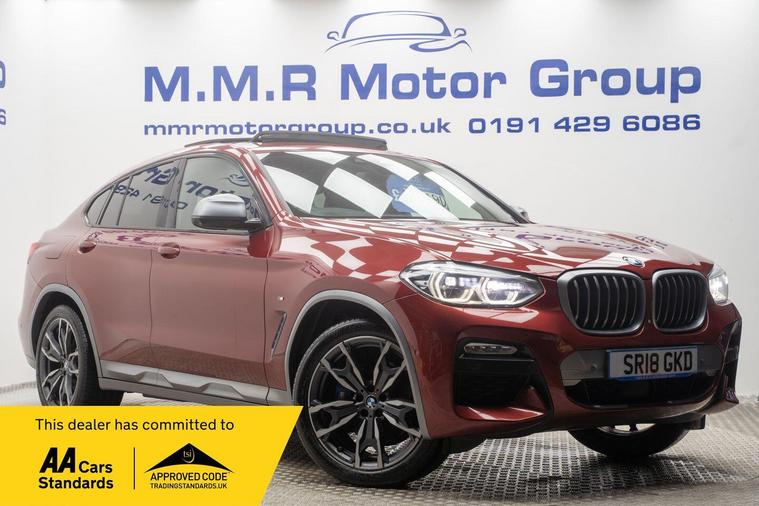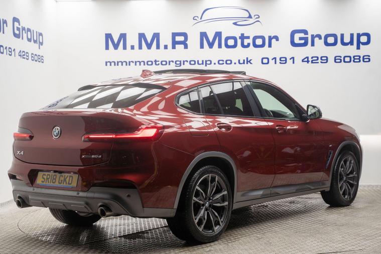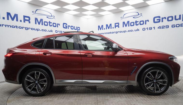 83, 494 miles, This BMW X4 20d M Sport X boasts a clear vehicle history with 1 Former Keeper. This stylish SUV features a powerful 2.0L diesel engine, paired with a four wheel drive system for confident handling in all conditions. Its Euro 6 emission class ensures efficient performance, and the M Sport X trim level adds a sporty aesthetic. Inside, you'll find the luxurious BMW Individual Extended Merino Leather in Fiona Red Black, sunroof and Harman Kardon Sound, a Head Up Display for convenient information access, and Active Cruise Control with Stop and Go Function for relaxed journeys. Apple CarPlay preparation is also included.The X4 20d M Sport X offers impressive performance, accelerating from 0 to 62mph in just 8.0 seconds, demonstrating its dynamic capabilities. The inclusion of Driving Assistant Plus further enhances your driving experience, providing advanced safety and convenience features. This vehicle also offers generous boot space, making it practical for everyday use and longer trips. These highlights collectively position this BMW X4 as a compelling choice, offering a blend of performance, luxury, and practicality that sets it apart from other vehicles in its class.Please call our experienced sales team on 01914800597 for any additional specification queries, an in depth appraisal/ Video call or maybe we can help fund your new car. All our vehicles are prepared to the highest standards by our expert technicians in our fully equipped preparation centre as we're an AA approved dealer. Every car must go through a strict and thorough inspection, Items that require attention, mechanically or cosmetically are addressed prior to delivery. We offer a wide range of Finance and Warranty packages as well as fantastic trade rates for allow wheel refurbs/colour changes, window tinting and much more. All our vehicles are subject to a £199 service support fee and are therefore supplied with pre delivery service, 12 months MOT, 12 months AA breakdown cover and 6 months Auto Protect warranty that can be extended up to 24 month. All vehicles are HPI clear..