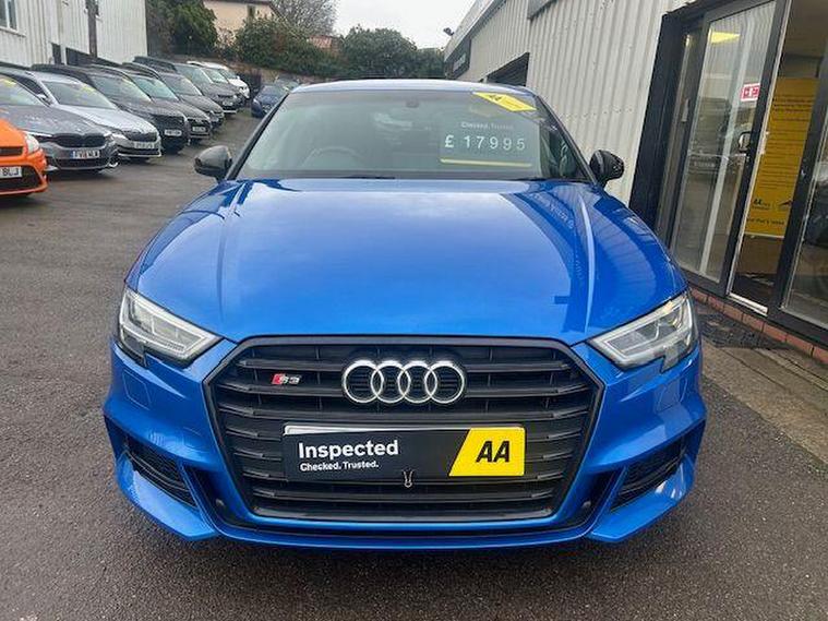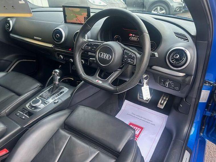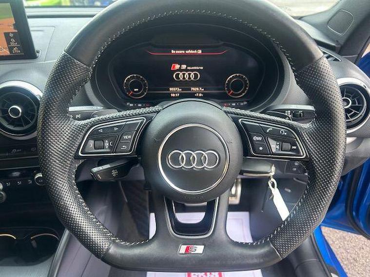 This 2019 Audi S3 TFSI Black Edition offers impressive performance with its MOT valid until November 2026, ensuring peace of mind for the coming years. This four wheel drive model boasts a powerful 2.0 litre petrol engine and meets Euro 6 emissions standards. It comes with a three month warranty for added security.Experience superior illumination with LED headlights and dynamic rear indicators, while the Bang and Olufsen sound system provides an exceptional audio experience. Stay comfortable with dual zone electronic climate control and easily navigate tight spaces thanks to the rear parking sensors. This Audi S3 accelerates from 0 to 62 miles per hour in just 4.7 seconds, demonstrating its superior performance compared to other vehicles in its class. The Bluetooth interface allows for seamless connectivity on the go.This vehicle boasts full service history with services carried out mainly by Audi main agents with 8 recorded services with the last service carried out at 90862 miles and has current MOT until November 2026.It comes with all S-Line features such as Quilted leather interior, Flat bottom Multi function steering wheel, Cruise control, S-Line Body kit, Satellite navigation, Heated seats, Paddle shift, Keyless start and remote central locking with 2 x keys.It is presented in truly excellent condition throughout and drives super. Viewing, test drive and inspection welcome.Finance available..