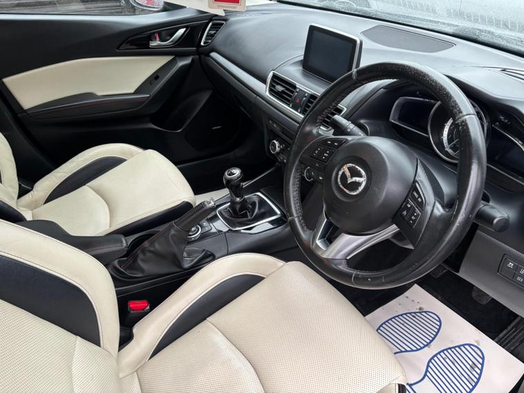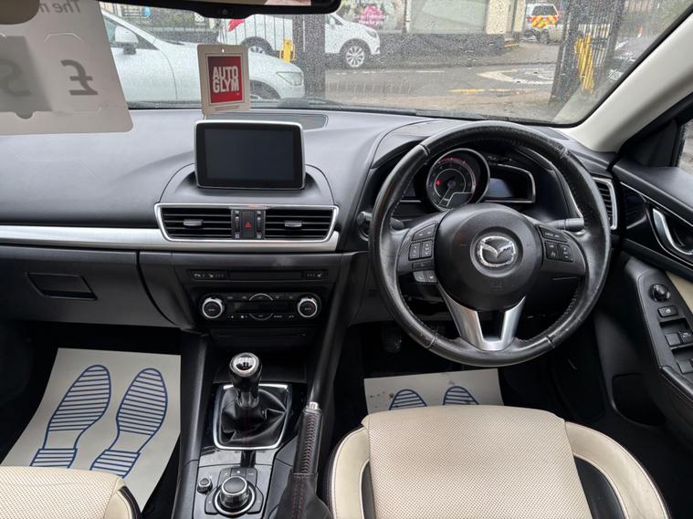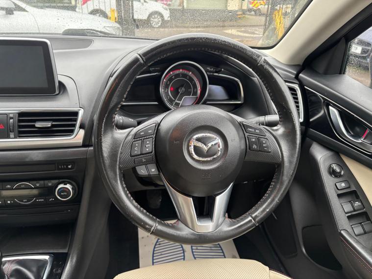 HERE WE HAVE ON SALE THE SUPERB MAZDA MAZDA3 2.0 SKYACTIV-G SPORT NAV FASTBACK EURO 6 FINISHED IN METALLIC dealer's website WITH FULL CREAM/BLACK LEATHER SEATS, SATELLITE NAVIGATION, 7 INCH TOUCH SCREEN, CRUISE CONTROL, BLUETOOTH, MULTIFUNCTIONAL STEERING WHEEL, PARKING SENSORS FRONT AND REAR WITH REVERSE CAMERA, HEATED FRONT SEATS, ELECTRIC WINDOWS, ELECTRIC AND HEATED MIRRORS, ELECTRIC PARKING BRAKE, DUAL ZONE CLIMATE CONTROL WITH AIR CONDITIONING, HILL OLD ASSIST, START STOP BUTTON, ISOFIX ATTACHMENT POINTS, RAIN SENSING WIPERS, TYRE PRESSURE MONITORING SYSTEM, USB INPUT, REMOTE CENTRAL LOCKING, X2 KEYS.............THIS VEHICLE COMES WITH CONSISTENT SERVICE HISTORY AND WILL BE SERVICED AT POINT OF SALE.................VIEWING ESSENTIAL................FINANCE AVAILABLE ON REQUEST..