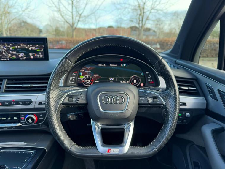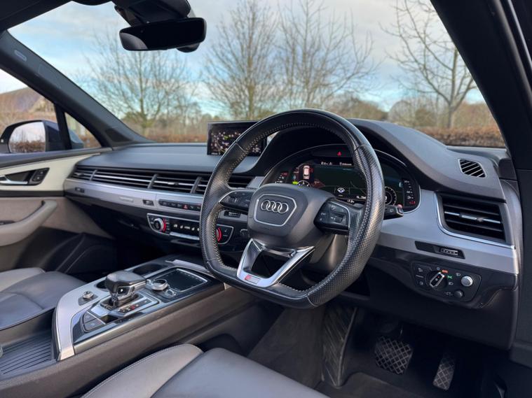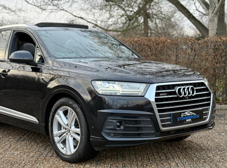 2015 (65) Audi Q7 3.0 TDI V6 S line Tiptronic Quattro – 73, 500 miles – £22, 489This Audi Q7 S line combines premium comfort, power, and full 7-seater practicality with serious spec. Finished in a stunning black exterior over grey leather interior, this high-spec Q7 has had 2 previous owners, comes with full service history, and is loaded with sought after factory options, including panoramic roof, air suspension, Electric Towbar, and much more.Spec highlights include: • Technology Package (inc. Audi Virtual Cockpit) • Panoramic Glass Sunroof • Head-Up Display • Towbar • Audi Phone Box with Wireless Charging • BOSE Sound System • Electric Front Seats with Memory • Adaptive Air Suspension – for smooth adjustable ride quality • Adaptive Cruise Control (Tour Pack) • City Package • Lane Keeping System • Dynamic Road Sign Display • High-Beam Control • 360 Camera • Heated Front Seats • Folding/Dimming MirrorsThis Q7 doesn’t just look the part, it’s built to handle long journeys with ease, carry the whole family in comfort, and deliver serious road presence. Whether you’re after tech, space, or power, this one’s got it all.Dealer benefits included: • ULEZ Compliant • 6–12 Months MOT • 6-Month Warranty (extendable up to 3 years) • AA Approved Dealer with 6 Months Roadside Cover • HPI Clear (report available) • Competitive Part Exchange • Nationwide Delivery • Vehicle Sourcing AvailableThis is one of the most complete Q7 specs on the market. If you’re looking for space, comfort, power and premium options, this is the SUV for you. Contact us today to book a viewing or test drive. We’ll help with part exchange or delivery, whatever suits you best..