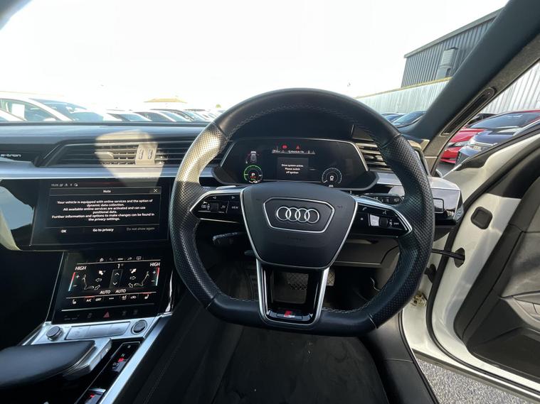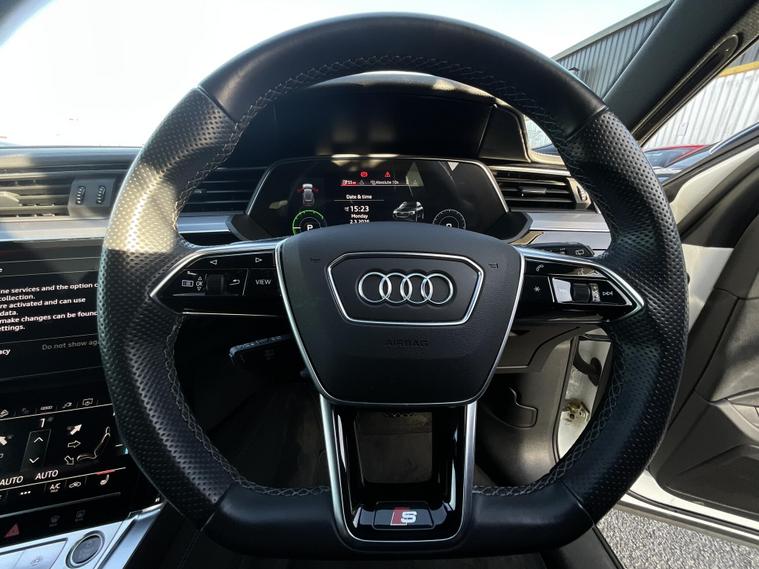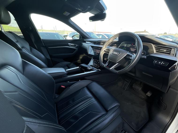 This 2022 Audi e-tron Black Edition boasts a clear vehicle history check and an MOT valid until December 2026, offering peace of mind for its next owner. As an electric vehicle, it features four wheel drive and a substantial 95 kWh battery, providing a maximum range of 251 miles when new. This Black Edition trim level enhances the already impressive e-tron with its distinctive styling. Experience swift acceleration with the e-tron, capable of reaching 0-62mph in just 5.7 seconds, a performance that sets it apart. Charging is convenient, with a full charge at home taking approximately 14 hours using a 7kW charger, and a rapid charge to 80% achievable in around 40 minutes at a public charging station. Furthermore, the generous boot space ensures practicality for all your needs, making this Audi e-tron a compelling choice for those seeking electric performance and versatility..
