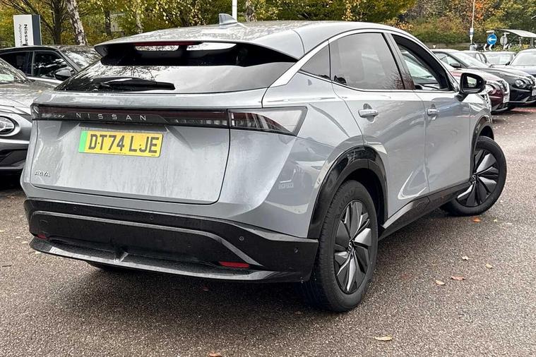 This 2025 Nissan ARIYA Evolve presents an exceptional opportunity with remarkably low mileage for its age, having covered just 6938 miles. As a Nissan manufacturer approved electric vehicle, it boasts a substantial 91 kWh battery, offering a maximum range of 322 miles when new. This ARIYA is equipped with Automatic Dual Zone Climate Control for personalised comfort, Blind Spot Intervention to enhance safety, and Intelligent Key with a Push Button Start for effortless access. Additionally, Front and Rear Parking Sensors provide confidence when manoeuvring.The ARIYA Evolve stands out with its impressive electric capabilities. Its 322 mile maximum range indicates superior performance compared to many other electric vehicles, allowing for longer journeys with fewer stops. When you need to recharge, a full charge at home using a 7kW charger takes approximately 15 hours, while rapid public charging can take you from empty to 80% in just 40 minutes, demonstrating its efficiency and convenience for everyday use and longer trips alike..
