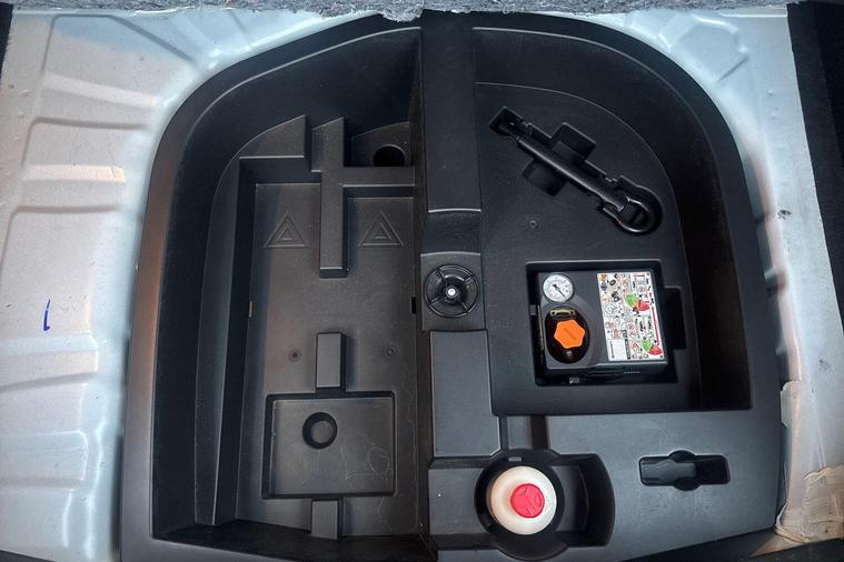 - Cloth upholstery with black and metallic grey syntech leather inserts