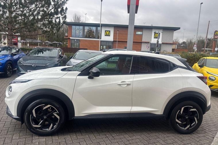 This 2022 Nissan Juke DIG T N Connecta presents a remarkable opportunity with its exceptionally low mileage of just 17, 449 miles, a clear indicator of its careful previous ownership. As a Nissan manufacturer approved vehicle, you can be assured of its quality and condition. This stylish hatchback is powered by an efficient 1.0 litre petrol engine, meeting Euro 6 emission standards. Inside, you'll find the convenience of Apple CarPlay and Google Android Auto, allowing seamless integration of your smartphone for navigation and entertainment. The Intelligent Key system offers keyless entry and walk away lock functionality, complemented by a push button start for effortless operation. Maintaining a comfortable cabin is simple with the automatic climate control.The Juke DIG T N Connecta is designed to offer an enhanced driving experience, highlighted by its impressive fuel economy of 49 miles per gallon, which is better than many other vehicles in its class. Its low CO2 emissions also contribute to a more environmentally conscious drive. This combination of excellent fuel efficiency, low mileage, and advanced features makes this 2022 Nissan Juke a standout choice for those seeking a practical yet engaging compact car..