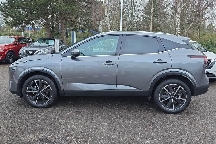 This 2023 Nissan Qashqai DIG-T Tekna is a remarkable example, boasting exceptionally low mileage for its age at just 5326 miles, and is Nissan manufacturer approved. This Euro 6 compliant model features a 1.3L Petrol Hybrid engine, offering an efficient and responsive drive. The Tekna trim level comes equipped with a suite of advanced driver assistance systems, including Intelligent Blind Spot Intervention and Blind Spot Warning, designed to enhance your awareness on the road. Parking is made effortless with Front and Rear Parking Sensors and the Intelligent Around View Monitor, which provides a 360 degree camera view. Furthermore, the vehicle is fitted with LED Headlights featuring Adaptive Driving Beam for optimal visibility in various conditions.The Qashqai DIG-T Tekna offers a compelling blend of practicality and performance, indicated by its impressive acceleration of 0-62mph in just 9.2 seconds. This model stands out from others in its class due to its very low mileage, suggesting it has been lightly used and well cared for. The generous boot space ensures you have ample room for luggage or shopping, making it a versatile choice for families and individuals alike. Additionally, its placement in a low insurance group highlights its cost effectiveness, providing peace of mind for owners..