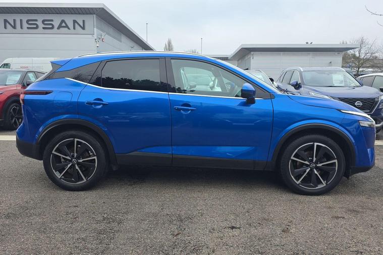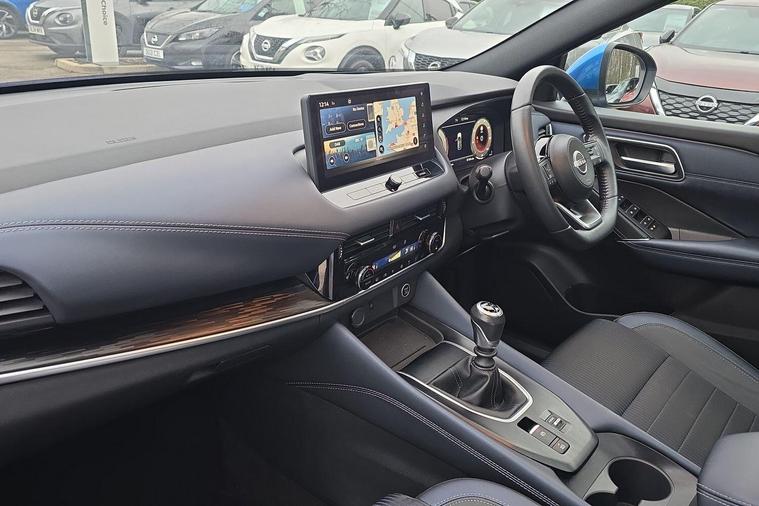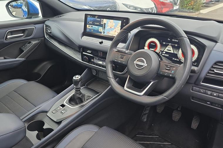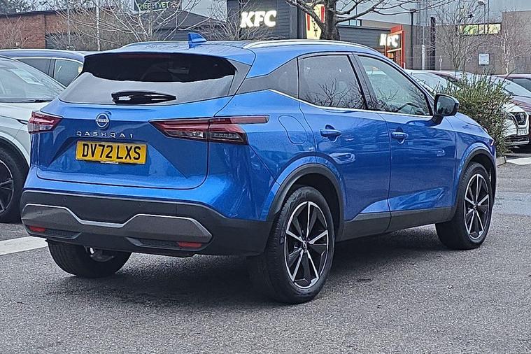 This 2022 Nissan Qashqai DIG-T Tekna is a Nissan manufacturer approved vehicle, offering peace of mind with its proven history. Powered by an efficient 1.3L Petrol Hybrid engine and meeting Euro 6 emissions standards, this Tekna trim model combines modern technology with practicality. You'll appreciate the convenience of Wireless Apple CarPlay, an Advanced Windscreen Head Up Display, and a Heated Steering Wheel for those colder journeys. Safety is also a priority, with Intelligent Blind Spot Intervention and Blind Spot Warning systems included.The Qashqai DIG-T Tekna stands out with its generous boot space, making it ideal for families or those who need extra room for luggage or shopping. Furthermore, its placement in a low insurance group means that running costs are kept to a minimum, offering excellent value compared to many other vehicles in its class. This combination of advanced features, practicality, and cost effectiveness makes this Nissan Qashqai a compelling choice..