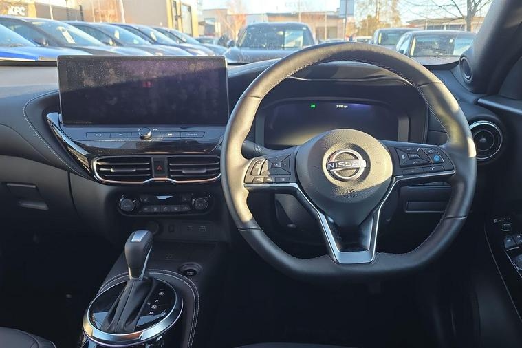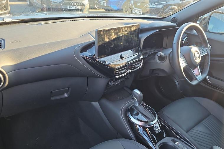 This 2025 Nissan Juke Tekna is a Nissan manufacturer approved vehicle, offering peace of mind with its proven quality. Powered by an efficient 1.6L Petrol Hybrid engine, this Euro 6 compliant model combines modern technology with responsible driving. Inside, you'll enjoy the immersive Bose Personal Plus Audio System, complete with a premium branded sound system, and seamless connectivity through wireless Apple CarPlay and Google Android Auto.The Juke Tekna stands out with its impressive fuel economy, achieving up to 60 mpg, which is a significant advantage for your running costs. Furthermore, its low CO2 emissions and low insurance group rating demonstrate its efficiency and affordability compared to other vehicles in its class. This combination of features makes the Nissan Juke Tekna a smart and enjoyable choice..