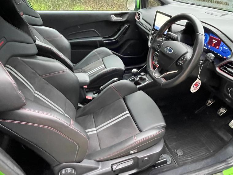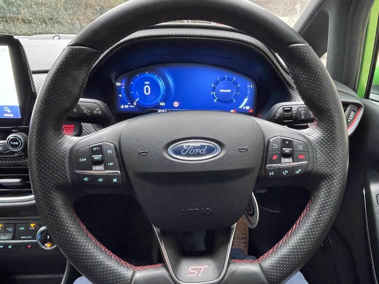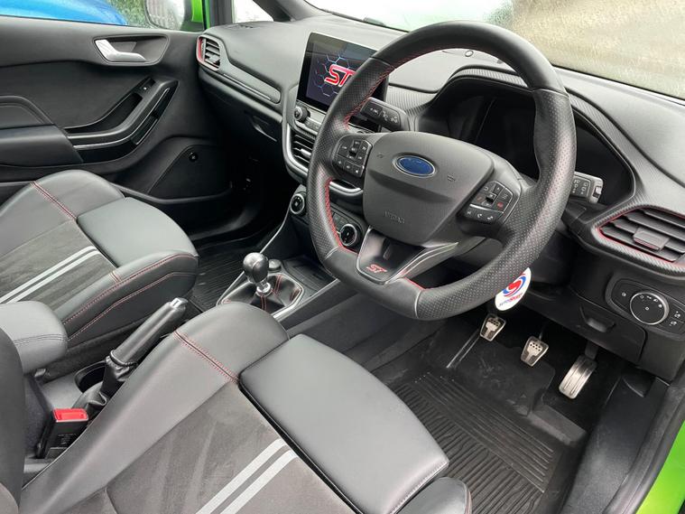 This 2022 Ford Fiesta ST-3 presents an exceptional opportunity with its remarkably low mileage of just 12, 000 miles, having been owned by only one careful keeper. Powered by a spirited 1.5L Euro 6 petrol engine, this ST-3 variant offers a dynamic driving experience. Inside, you'll find comfort and convenience with Electronic Automatic Temperature Control air conditioning, while the SYNC 3 system with navigation seamlessly integrates your smartphone via Android Auto and Apple CarPlay, also featuring wireless phone charging. The exterior is enhanced by striking Matrix LED headlights, complete with signature LED daytime running lights and sequential indicators, ensuring excellent visibility.The performance of this Fiesta ST-3 is truly a highlight, boasting an impressive 0-62mph acceleration time of just 6.5 seconds, demonstrating its sporty capabilities. This quick acceleration, combined with the premium B&O Sound System for an immersive audio experience, sets this vehicle apart from others in its class. The inclusion of automatic headlights further adds to the sophisticated and user friendly nature of this well appointed Ford Fiesta..