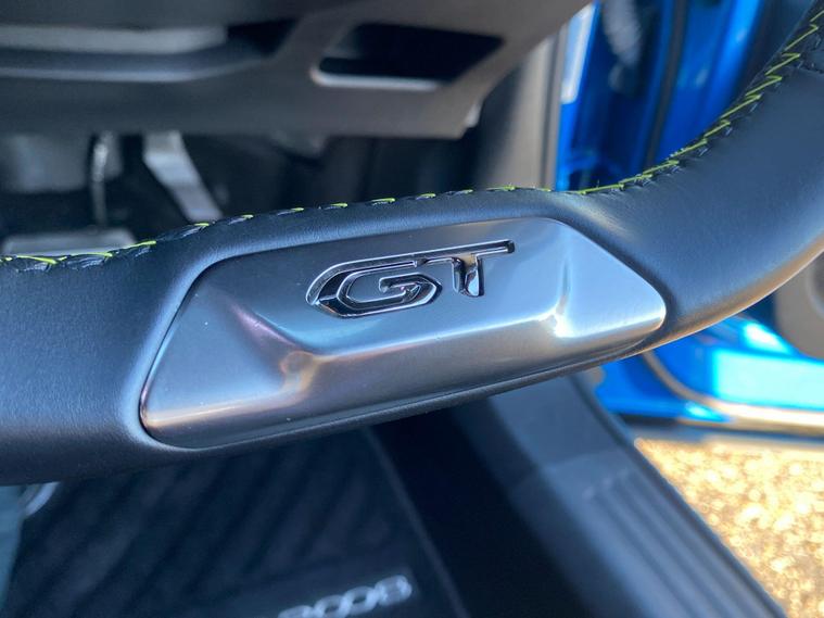 - Mistral Full-Grain Perforated Leather Steering Wheel with Lime Green Stitch Detail and Satin Chrome GT Emblem