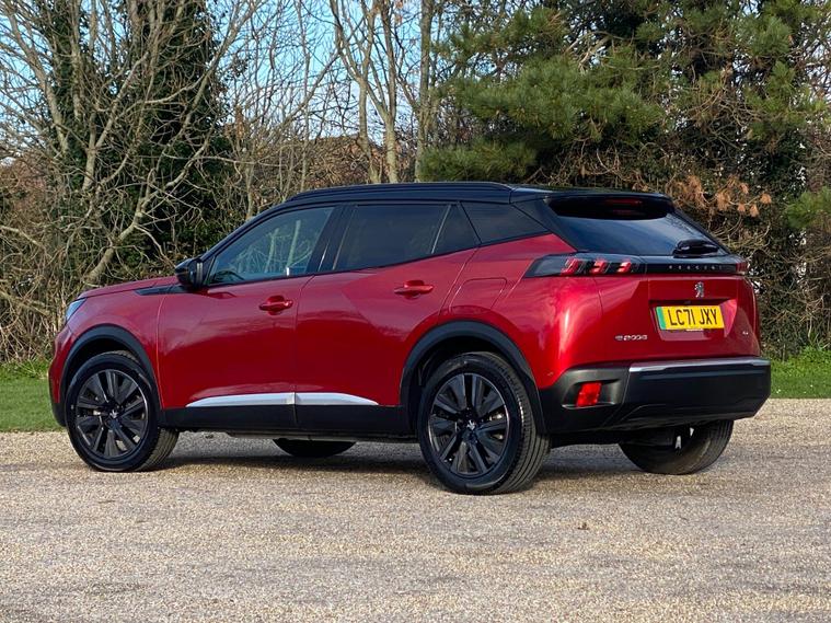 This 2021 Peugeot E-2008 GT Premium is a standout example, boasting a single owner and a remarkably low mileage of just 22, 800 miles, complemented by a full service history. As a fully electric vehicle, it offers a 50 kWh battery with a maximum range of 206 miles when new. Charging is convenient, taking approximately 7 hours and 30 minutes at home with a 7kW charger, while rapid public charging can replenish the battery from empty to 80% in as little as 30 minutes.The GT Premium trim level ensures a wealth of advanced features designed for comfort and safety. These include a Blind Spot Monitoring System with Blind Spot Assistance, Full LED Headlights with Smartbeam Assist, and the Drive Assist Pack Plus, which incorporates Adaptive Cruise Control with Stop-Go and Lane Positioning Assist. Parking is made easier with front and rear parking sensors, and the Mirror Screen system provides seamless integration with Apple CarPlay and Android Auto. These features collectively enhance the driving experience, offering a superior level of technology and convenience compared to other vehicles in its class..