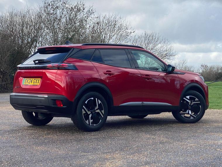 This 2024 Peugeot E-2008 Allure is a superb example, having had only one owner since new. This electric SUV offers a compelling blend of style and practicality, boasting a 50 kWh battery that provides a maximum range of 212 miles on a full charge. Recharging at home with a 7kW charger takes approximately 8 hours and 14 minutes, making overnight charging convenient. For faster top ups, a public charger can replenish the battery from empty to 80% in as little as 34 minutes.The Allure trim level comes equipped with a range of desirable features designed to enhance your driving experience. These include a Heat Pump for efficient cabin climate control, Bluetooth for seamless phone connectivity, and Eco LED headlights for improved visibility. The Automatic Air Conditioning with advanced filters ensures a comfortable interior environment, while the Visibility Pack, which includes automatic headlights, adds further convenience. These features collectively position this E-2008 as a well appointed and practical choice for electric motoring..