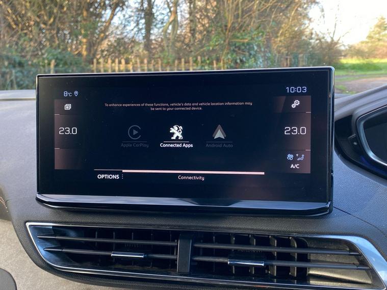 This 2023 Peugeot 3008 GT Premium is a standout example, having been owned by only one careful keeper and boasting a full service history. Powered by an efficient 1.2 litre Euro 6 petrol engine, this model offers a compelling blend of performance and economy, achieving an impressive 46 miles per gallon. The GT Premium trim level ensures a sophisticated driving experience, enhanced by the Drive Assist Plus Pack which includes adaptive cruise control for effortless motorway journeys.Further enhancing its appeal, this Peugeot 3008 features automatic dual zone climate control for optimal passenger comfort, and electric door mirrors equipped with blind spot detection and auto dipping for reverse. Parking is made simpler with front parking sensors, and the Mirror Screen functionality seamlessly integrates your smartphone via Apple CarPlay and Android Auto. The generous boot space provides ample room for all your luggage, making this a practical and well equipped choice..