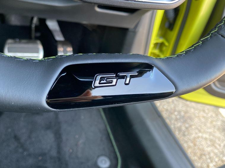 - Multifunction Full Grain Perforated Leather Steering Wheel with Adamite Green Stitching and GT Emblem