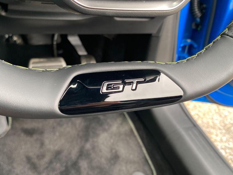 - Multifunction Full Grain Perforated Leather Steering Wheel with Adamite Green Stitching and GT Emblem
