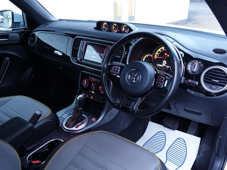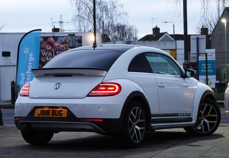 This 2018 Volkswagen Beetle TSI Dune boasts a full service history, ensuring excellent provenance for this stylish vehicle. Powered by a 1.2 litre Euro 6 compliant petrol engine, this Beetle offers an impressive fuel economy of 54 miles per gallon. It comes equipped with desirable features including Climatic semi-automatic air conditioning, a dusk sensor for automatic headlights, and front and rear parking sensors for added convenience. The Composition Media system with Bluetooth connectivity keeps you entertained and connected on the go, while the Light and Sight Pack further enhances visibility.This particular TSI Dune variant stands out with its comprehensive provenance, including a clear vehicle history check and a recent service completed on 2025-09-19 at 48, 587 miles. To provide peace of mind, a 12 month MOT will be provided on purchase, and the vehicle is supplied with a 3 month warranty. These details collectively indicate that this Volkswagen Beetle has been well cared for and is in a strong position compared to other similar vehicles on the market..