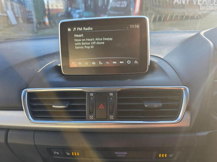 MOTORWAY MILEAGE !!!! , HPI:CLEAR , ULEZ FREE, ANNUAL ROAD TAX ONLY £135 , FULL SERVICE HISTORY , JUST HAD A FRESH SERVICE , LONG MOT , SATELLITE NAVIGATION , FRONT AND REAR PARKING SENSORS , HEATED FRONT SEATS , 2 REMOTE MAZDA FOBS , SPEED DISPLAY , POWERFOLDED WING MIRRORS , BLUETOOTH , CRUISE CONTROL , USB , FULLY LOADED AND GREAT LOOKING SPORT CAR , DONT MISS IT !!!, 3 to 36 months warranty available , 5 days drive away insurance available, in Greenford Perivale London, all major debit and credit card accepted, finance option available, dealer's website All Vehicles Are Subject To A £99.99 Administration FeeThis 2014 Mazda3 SKYACTIV G Sport Nav is a well maintained example, having had only two owners from new. It features a responsive 2.0 litre petrol engine and comes with the desirable Sport Nav trim. Inside, you'll find a combined Bluetooth system for phone calls and audio streaming, front heated seats for comfort, and a helpful head up display to keep your eyes on the road. Parking is made easier with front parking sensors and assistance, and the steering wheel paddle shifts offer a more engaging driving experience.This Mazda3 also boasts a generous boot space, making it practical for everyday use and longer journeys. Its acceleration from 0 to 62 miles per hour in 10.4 seconds is competitive within its class. Furthermore, its low insurance group rating indicates that running costs are likely to be more affordable compared to similar vehicles, offering excellent value..