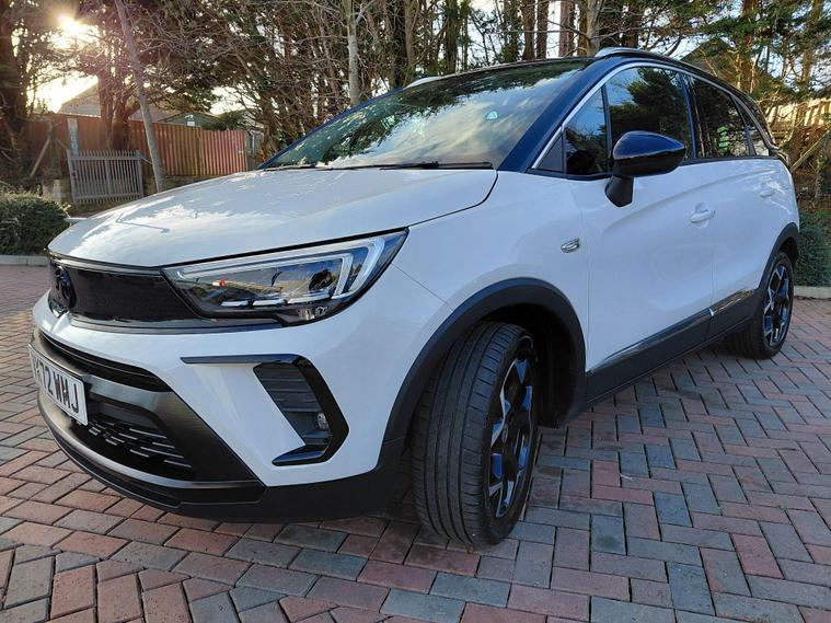 *** 1 YEAR SPOTICAR WARRANTY, ROADSIDE ASSISTANCE & MOT COVER ***This 2022 Vauxhall Crossland Turbo Ultimate is a superb example, having been owned by just one careful keeper since new. This Euro 6 compliant 1.2 litre petrol model offers a compelling blend of style and practicality, featuring an electronic dual zone climate control system to keep everyone comfortable, and automatic lighting control for effortless driving. The Ultimate trim level also includes a heated leather covered steering wheel with a satin chrome effect bezel, enhancing the driving experience.You can drive with confidence thanks to the advanced parking assistance systems, which include both a front camera system and a panoramic rear view camera. This Vauxhall Crossland achieves an impressive fuel economy of 49 miles per gallon, and its low CO2 emissions and low insurance group rating further highlight its cost effectiveness compared to similar vehicles..