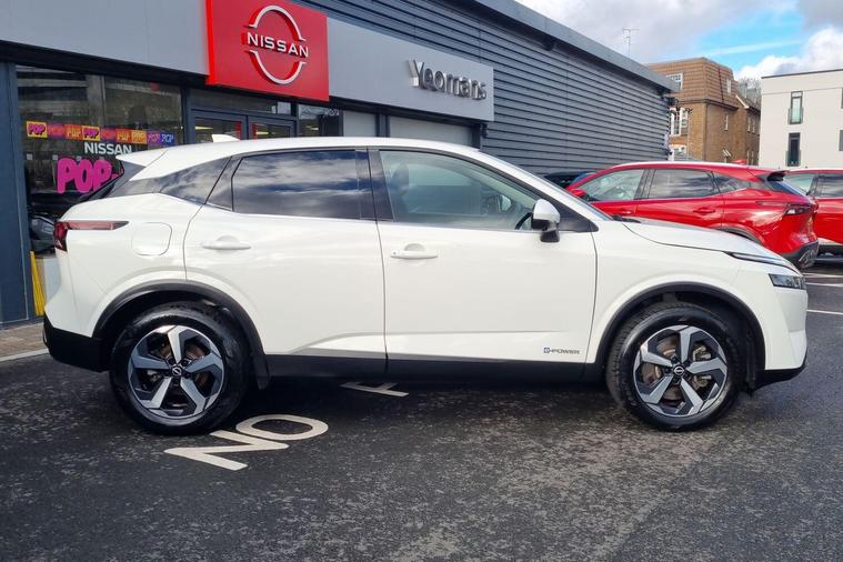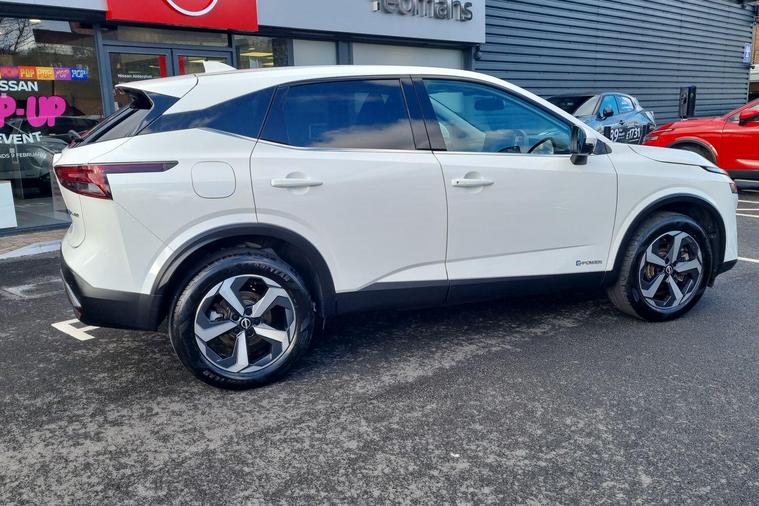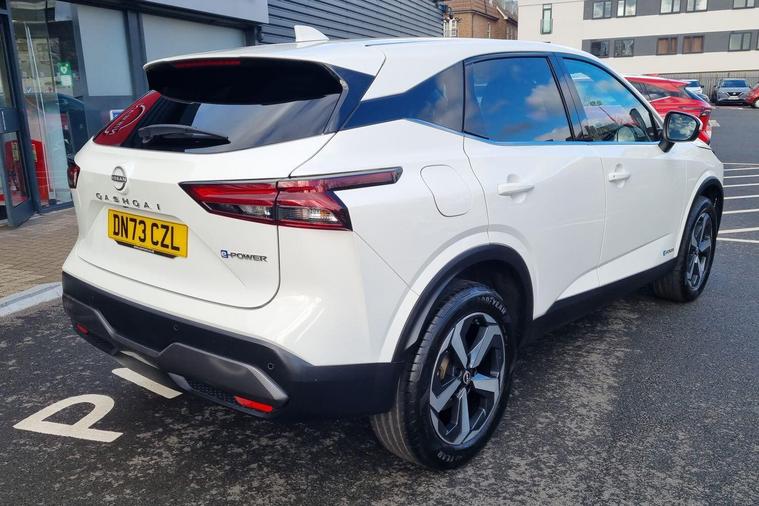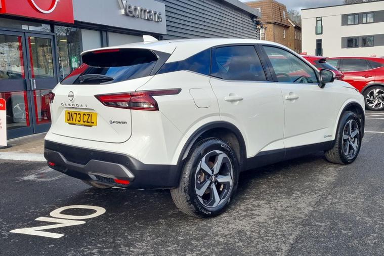 This 2023 Nissan Qashqai h e-POWER N-Connecta offers an exceptional ownership proposition with its remarkably low mileage of just 7638 miles. This Euro 6 compliant model features a 1.5 litre petrol hybrid engine, combining efficiency with responsive performance. The N-Connecta trim level comes equipped with a suite of intelligent features designed to enhance your driving experience, including Intelligent Blind Spot Intervention for added safety, Rear Parking Sensors to assist with manoeuvring, and Intelligent Auto Headlights that adapt to changing light conditions. You'll also appreciate the convenience of Intelligent Key for keyless entry and Automatic Dual Zone Climate Control to maintain a comfortable cabin temperature.Experience the benefits of this advanced hybrid technology, which delivers an impressive fuel economy of 54 miles per gallon, making it a cost effective choice for your journeys. The Qashqai also boasts a generous boot space, providing ample room for shopping or luggage. With low CO2 emissions, this vehicle is kinder to the environment. Furthermore, its acceleration from 0 to 62 miles per hour in just 7.9 seconds demonstrates that efficiency does not compromise performance, setting it apart from many other vehicles in its class.? DRIVE AWAY WITH MORE AT NISSAN ALDERSHOT ?-£250 Deposit Finance Allowance (DFA) – We help with your upfront cost!-Up to 2 Years FREE Servicing – Total peace of mind for the road ahead.-Flexible PCP Finance – Low monthly payments tailored to your budget.Ready to take the next step? Call the team at Nissan Aldershot today on 01252270041 to find out more or book your test drive.Terms and conditions apply. Offers available on PCP (Personal Contract Purchase) agreements for selected vehicles only. Finance subject to status. All offer details and full T&Cs can be confirmed via the dealership on 01252270041..