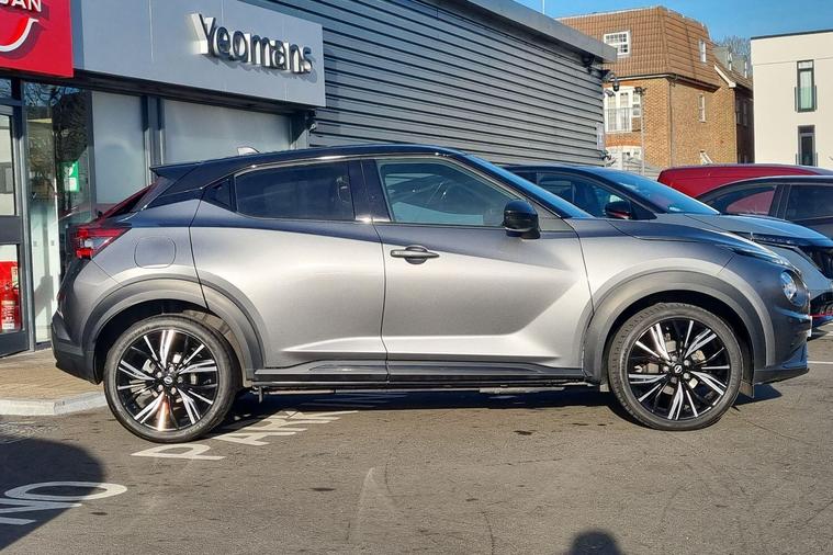 ? DRIVE AWAY WITH MORE AT NISSAN ALDERSHOT ?-£250 Deposit Finance Allowance (DFA) – We help with your upfront cost!-Up to 2 Years FREE Servicing – Total peace of mind for the road ahead.-Flexible PCP Finance – Low monthly payments tailored to your budget.Ready to take the next step? Call the team at Nissan Aldershot today on 01252270041 to find out more or book your test drive.Terms and conditions apply. Offers available on PCP (Personal Contract Purchase) agreements for selected vehicles only. Finance subject to status. All offer details and full T&Cs can be confirmed via the dealership on 01252270041.Discover this 2022 Nissan Juke DIG-T Tekna+, a stylish and feature packed compact SUV. This Euro 6 compliant model boasts a responsive 1.0L petrol engine, offering an impressive fuel economy of 48 miles per gallon. Inside, you'll find a comfortable and connected cabin, equipped with Automatic Air Conditioning for your comfort, and a USB AUX socket with Bluetooth connectivity for seamless audio streaming. The Tekna+ trim level includes the advanced Bose Personal Plus Audio System, providing a premium sound experience, and front parking sensors to aid manoeuvrability.This Nissan Juke is designed to enhance your driving experience. Its integration of Android Auto and Apple CarPlay allows for easy access to your smartphone apps, navigation, and music directly through the car's display. The low CO2 emissions further highlight its efficiency and environmental consideration compared to similar vehicles. With its combination of modern technology, fuel efficiency, and a premium audio system, this Juke offers a compelling package for any driver..