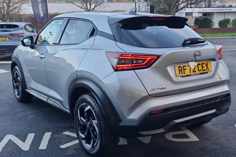 ? DRIVE AWAY WITH MORE AT NISSAN ALDERSHOT ?-£250 Deposit Finance Allowance (DFA) – We help with your upfront cost!-Up to 2 Years FREE Servicing – Total peace of mind for the road ahead.-Flexible PCP Finance – Low monthly payments tailored to your budget.Ready to take the next step? Call the team at Nissan Aldershot today on 01252270041 to find out more or book your test drive.Terms and conditions apply. Offers available on PCP (Personal Contract Purchase) agreements for selected vehicles only. Finance subject to status. All offer details and full T&Cs can be confirmed via the dealership on 01252270041.This 2022 Nissan Juke N Connecta is a superb example, having had only one owner from new and boasting exceptionally low mileage for its age. Powered by an efficient 1.6 litre petrol hybrid engine, this Euro 6 compliant model offers an impressive fuel economy of 55 miles per gallon. The N Connecta trim comes equipped with desirable features such as LED headlights for enhanced visibility, and intelligent keyless entry with a push button start, allowing you to lock and unlock the vehicle simply by walking away or approaching. Manoeuvring is made easier with the integrated rear view camera, and you can stay connected and entertained thanks to the USB AUX socket and Bluetooth connectivity. For your comfort, it also features automatic climate control.This Nissan Juke stands out with its excellent fuel efficiency, achieving 55 mpg, which is a significant advantage over many other vehicles in its class. Furthermore, its low CO2 emissions and low insurance group rating indicate that running costs are kept to a minimum, making it a very economical choice. With only 16523 miles on the clock, this Juke represents a fantastic opportunity to acquire a well maintained and feature rich compact SUV..