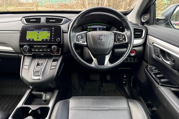 This 2020 Honda CR-V i-MMD EX is a Honda manufacturer approved vehicle with a full dealership service history and only one owner from new. It features a 2.0L petrol hybrid engine, a four wheel drive drivetrain, and meets Euro 6 emissions standards. Notable features include Adaptive Cruise Control, a Rear View Camera for parking assistance, and bright LED Headlights.The CR-V EX trim offers a refined driving experience, enhanced by the Head Up Display which projects key information onto the windscreen, keeping your eyes on the road. The generous boot space makes it incredibly practical for everyday use and longer journeys. These elements, combined with its hybrid technology and all wheel drive capability, position this CR-V as a superior choice for those seeking efficiency, versatility, and advanced technology..