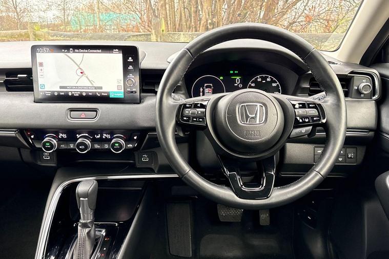 This 2022 Honda HR-V i-MMD Advance is a Honda manufacturer approved vehicle with a full dealership service history, having had only one owner from new. This stylish SUV features a 1.5L Petrol Hybrid engine, meeting Euro 6 emissions standards. Inside, you'll find the Honda CONNECT system, complete with navigation, Android Auto, and Apple CarPlay, alongside automatic headlights for added convenience.The HR-V Advance offers an impressive fuel economy of 52 mpg, demonstrating its efficiency compared to other vehicles in its class. Its low CO2 emissions further highlight its environmentally conscious design. This well maintained and feature packed hybrid SUV provides a refined driving experience..