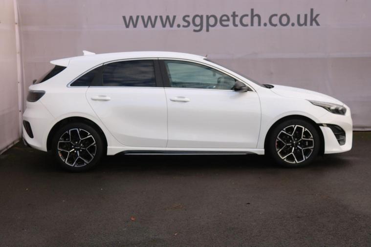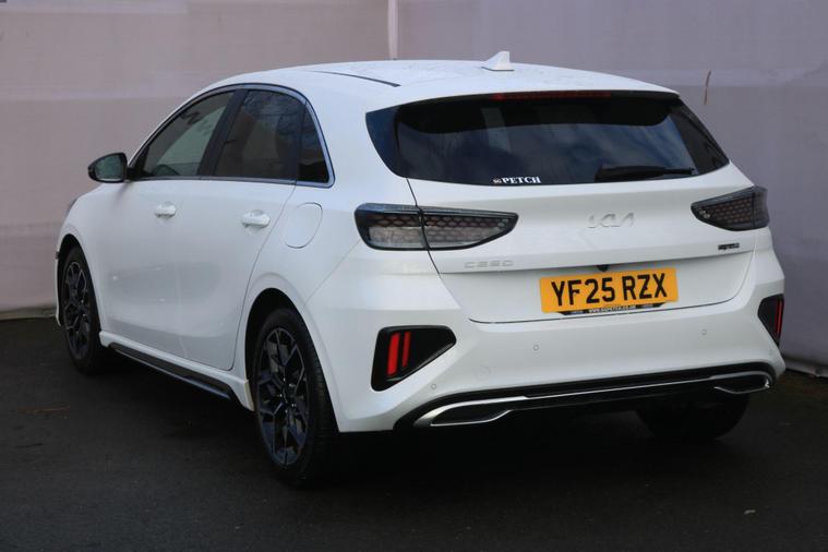 This 2025 Kia Ceed T-GDi GT-Line presents a superb ownership proposition, having had only one owner from new. This stylish hatchback is equipped with a responsive 1.5 litre petrol engine, meeting Euro 6 emission standards. Inside, you'll find a host of convenient features designed to enhance your driving experience, including Smart Cruise Control with Stop and Go Functionality, Drive Mode Select for customisable performance, and seamless integration with Android Auto with Voice Control. Comfort is assured with Heated Front Seats and Dual Automatic Air Conditioning, ensuring a pleasant journey in all conditions.The Kia Ceed GT-Line stands out with its impressive acceleration, reaching 0-62mph in just 9.7 seconds, demonstrating its spirited performance. This model also benefits from a low insurance group, making it an economical choice for many drivers. Furthermore, you'll appreciate the generous boot space, offering ample room for luggage or shopping. To provide peace of mind, this vehicle comes with an extensive 75 month warranty, underscoring Kia's commitment to quality and reliability..