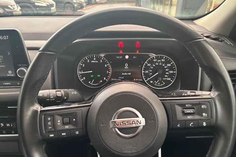 This 2021 Nissan Qashqai DIG-T Acenta Premium is a superb example, having been owned by just one person and boasting impressively low mileage for its age at only 29, 150 miles. This Euro 6 compliant 1.3L Petrol Hybrid model comes with the reassurance of Nissan manufacturer approval, ensuring its quality and reliability. It is equipped with advanced safety features including Intelligent Blind Spot Intervention and Blind Spot Warning, both part of the BLIS system, alongside Rear Parking Sensors for effortless parking assistance.The Acenta Premium trim level offers a generous boot space, making it ideal for families or those who need ample room for luggage or shopping. Furthermore, its low insurance group rating indicates that running costs are kept to a minimum, offering excellent value. These highlights, combined with its careful single ownership and low mileage, position this Qashqai as a particularly attractive and well maintained choice compared to other vehicles of its kind..