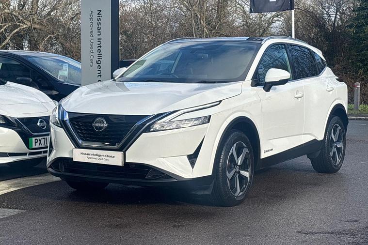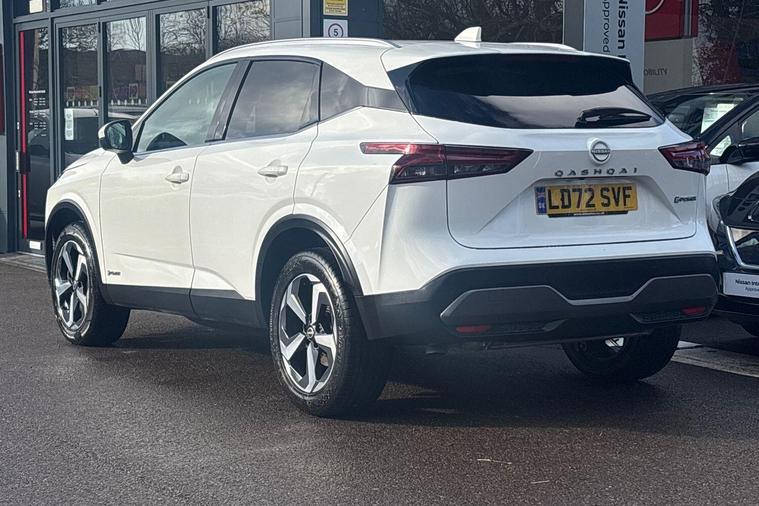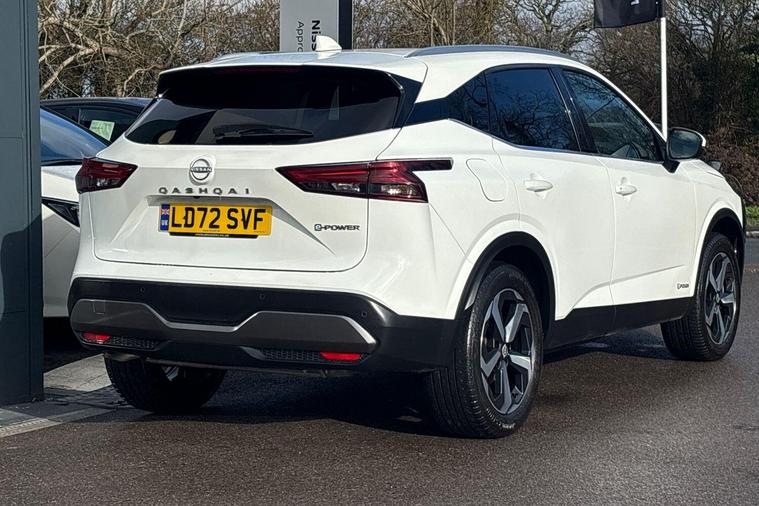 This 2022 Nissan Qashqai h e-POWER N-Connecta is a Nissan manufacturer approved vehicle with only one owner from new. It features a 1.5L Petrol Hybrid Engine and meets the Euro 6 emission class. This N-Connecta trim level comes equipped with front and rear parking sensors, a rear view camera, intelligent automatic headlights, Bluetooth with audio streaming, and blind spot warning for enhanced safety and convenience.Experience impressive performance with a 0-62mph acceleration time of just 7.9 seconds, all while benefiting from low CO2 emissions and an excellent fuel economy of 54 mpg. The Qashqai also offers generous boot space, making it a practical choice for everyday use and longer journeys. These highlights demonstrate how this Qashqai offers a superior driving experience compared to other vehicles in its class..