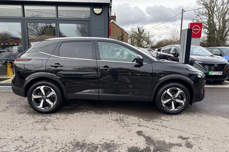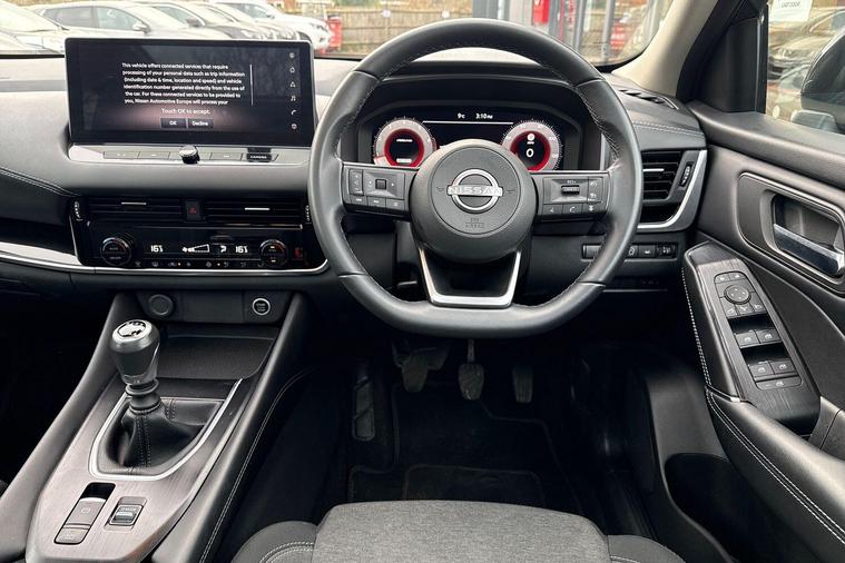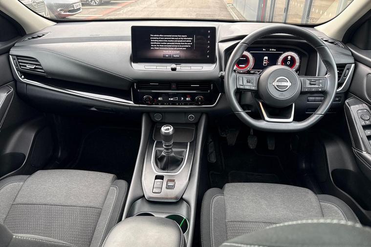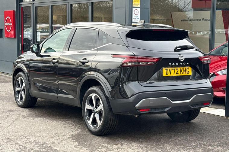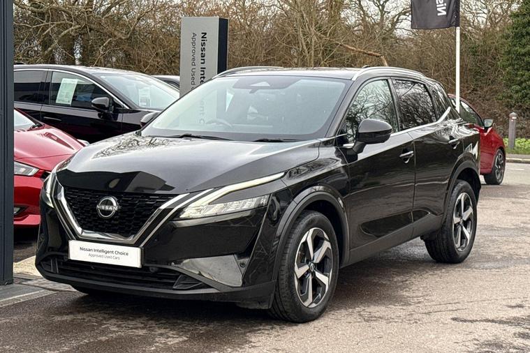 This 2022 Nissan Qashqai DIG-T N-Connecta presents an exceptional ownership proposition with its single owner and remarkably low mileage of just 16847 miles. This Euro 6 compliant 1.3L Petrol Hybrid model, approved by Nissan manufacturers, offers a refined driving experience. Inside, you'll find the convenience of Intelligent Key with keyless entry, allowing effortless access, while the Automatic Dual Zone Climate Control with pollen filter ensures a comfortable cabin environment. Enjoy your favourite music through Bluetooth with audio streaming, and let the Dusk Sensor automatically activate the headlights when needed.The N-Connecta trim is further enhanced by the Glass Roof Pack, which includes a fixed panoramic sunroof, bathing the interior in natural light. This Qashqai also boasts a generous boot space, making it ideal for shopping trips or family holidays. Its low insurance group rating is a significant advantage, indicating lower running costs compared to many similar vehicles. These combined highlights, from its excellent provenance to its practical features and cost saving potential, make this Nissan Qashqai a standout choice..